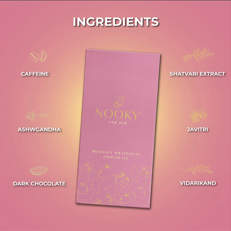 • Empowering Wellness, One Bite at a Time Experience the mood-boosting benefits of NOOKY Chocolate, thoughtfully designed to support women’s well-being. From enhancing responsiveness to promoting balance, it’s a delicious way to nurture your mind, body, and soul.